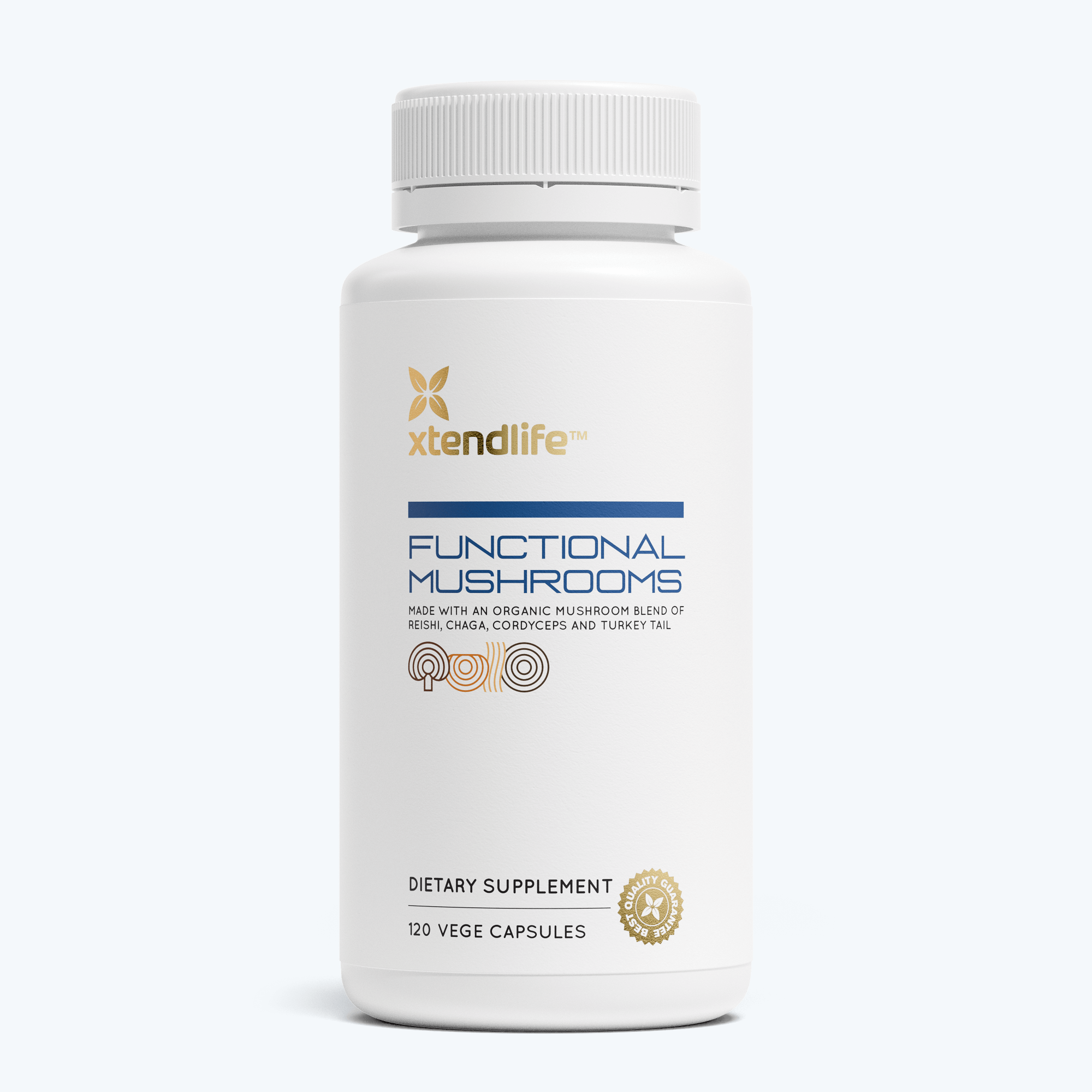 Introducing Xtendlife Functional Mushrooms, your organic superfood for immune support and overall wellness. Our blend combines certified organic Chaga, Cordyceps, Reishi, and Turkey Tail mushrooms grown on organic oats in a pristine indoor environment, delivering 2000 mg of potent mushroom goodness per serving.