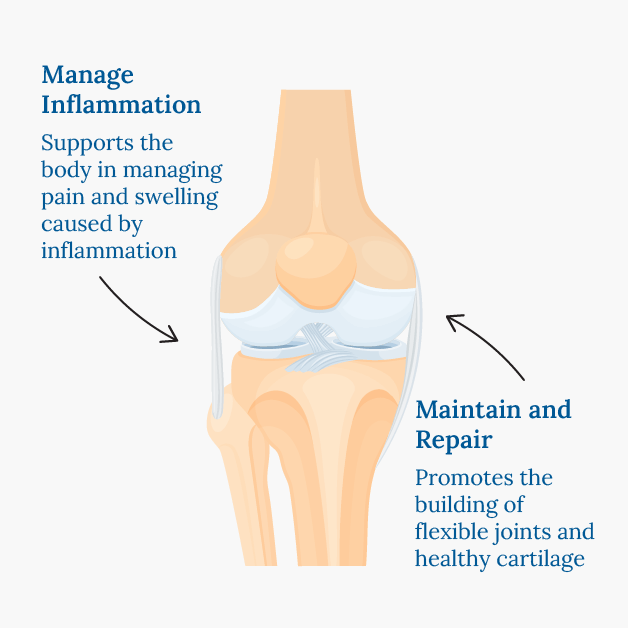 It contains omega-3 Fatty Acids, including a rare omega-3 called Eicosatetraenoic Acid (ETA) proven to manage inflammation more effectively than other omega-3 sources, including fish oil. These act as powerful anti-inflammatory agents to help manage joint pain and discomfort.