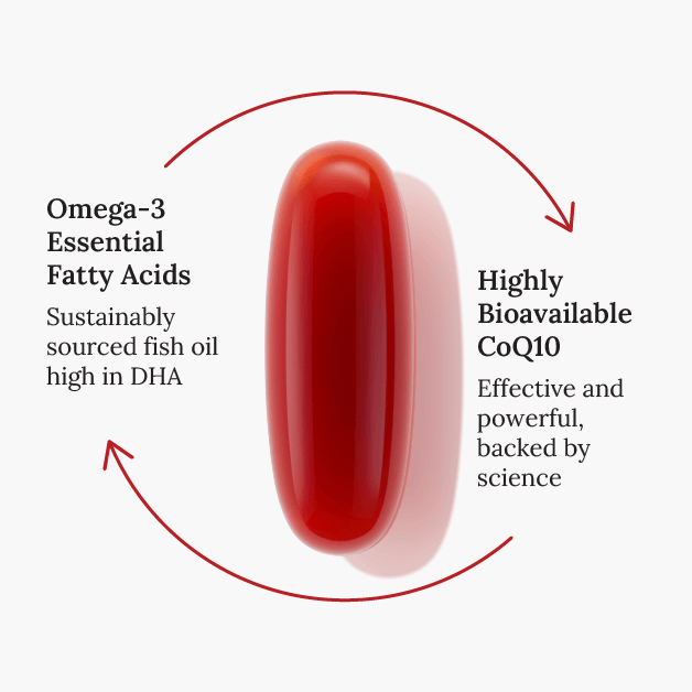 CoQ10 helps generate energy for cells, particularly the heart. Omega 3 / QH Premium CoQ10 provides the body with a direct source of CoQ10 as ubiquinol, the bioactive form the body prefers.